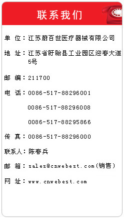 聯系人:陳春兵 地址:江蘇省盱眙縣工業園區迎春大道5號 郵編:211700 互聯網藥品信息服務資格證書號:(蘇)-非經營性-2023-0029 醫療器械投拆舉報電話:12315 電話:0086-517-88296001 88296008 0086-517-88295866 傳真:0086-517-88296000 網址:www.cnwebest_com.59966.cn E-mail:sales@cnwebest_com.59966.cn(銷售) 后臺管理 郵箱登錄 備案號:蘇ICP備17002214號-1 |